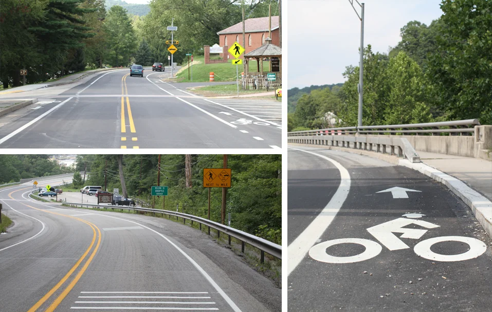 S.R. 0381 Section OST is located in Ohiopyle Borough, Fayette County, PA. The project was funded by PennVEST for the Redevelopment Authority of Fayette County, with PennDOT oversight and coordination from the Ohioplye Borough The scope of this Smart Transportation Initiative project was to provide pedestrians, bicyclists and boaters safeand efficient access to the Park's various amenities. The construction included resurfacing of S.R. 0381 Corridor, conversion of existing 4'-0" shoulders to 5'-0" directional bike lanes adjacent to the northbound and southbound lanes.