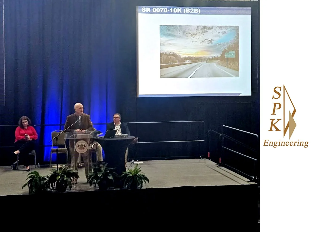 Angela Baker, Planning and Programming Manager, Patrick Richter, SPK Project Manager, Chad Basinger, Swank Construction Company and Domenic Caruso, Construction ACE presented “The Life Cycle of a Project” at the District 12 Winter Construction School held at PennWest California University on Friday February 14, 2025.