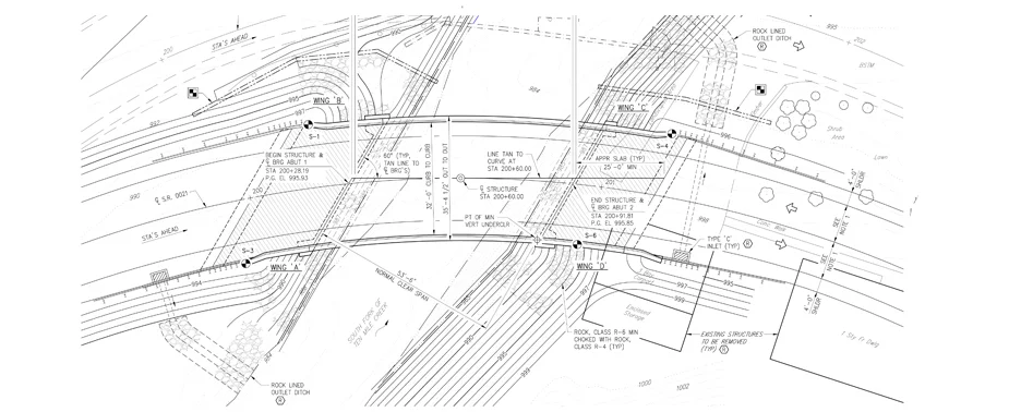 Pigeon Creek Bridge Replacement - This project included a two span (125.32' overall span) prestressed concrete spread box beam bridge over Pigeon Creek. The project also includes was 1,225' of approach roadway reconstruction.