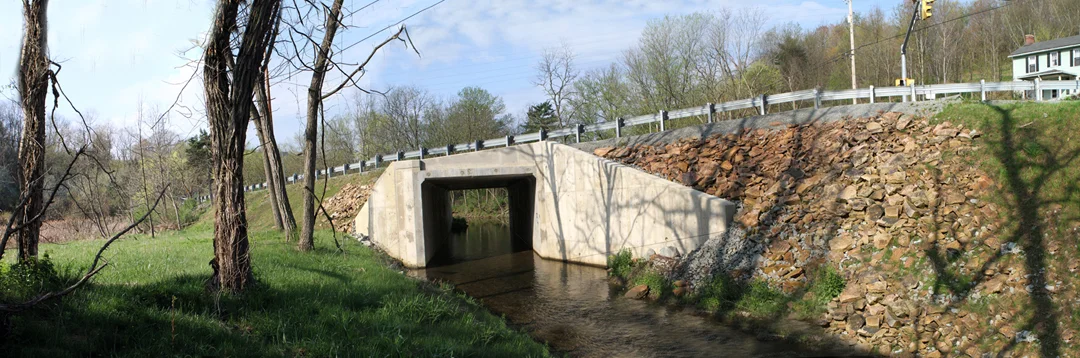 concrete box culvert carrying S.R. 3077 over branch of Little Sewickley Creek.