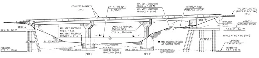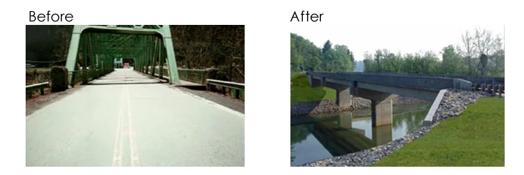 Dilliner Bridge Replacement - This project included the replacement of a single span thru-truss with a three span (82.6 m overall span) prestressed concrete spread box beam bridge over Dunkard Creek and a private railroad. The project also included 0.286 km of off-line approach roadway adjustments.