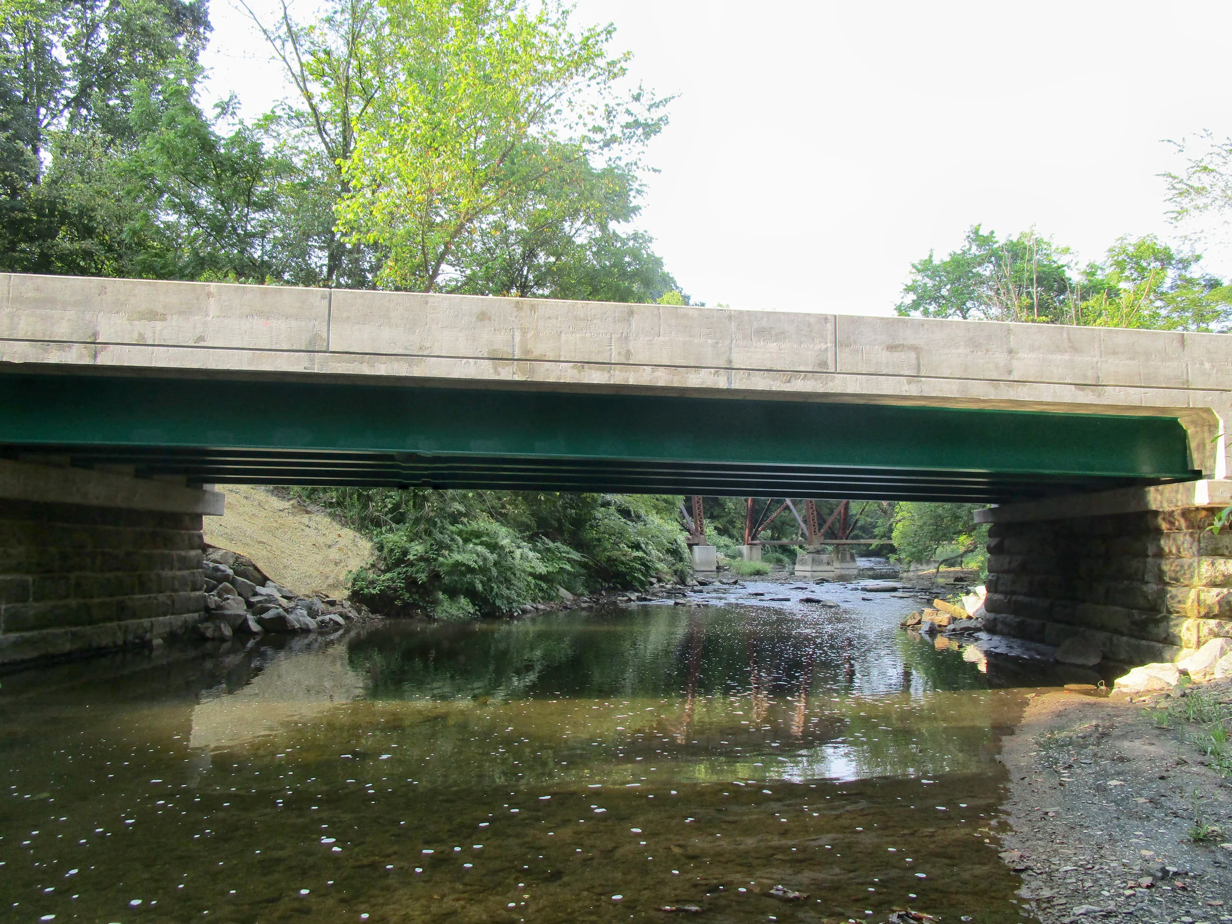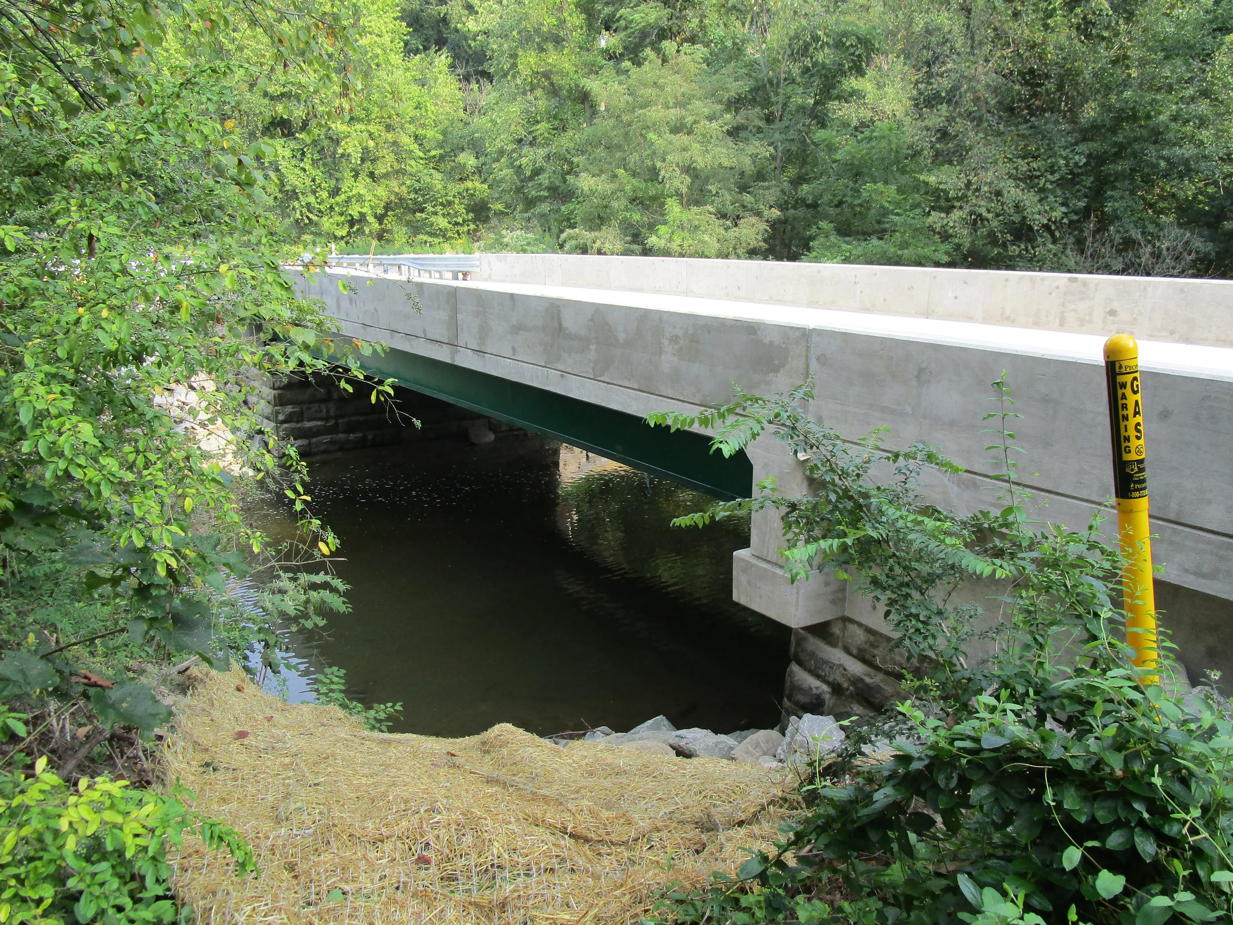 S.R. 3017, Section A04 (Gill Hall Road Bridge) - This project involves the rehabilitation of an existing single span steel I-beam bridge carrying S.R. 3017 (Gill Hall Road) over Peters Creek. The rehabilitation activities included deck replacement, beam repair and painting, bearing replacement, minor substructure modifications, and the addition of modified approach slabs to accommodate a widened bridge deck.