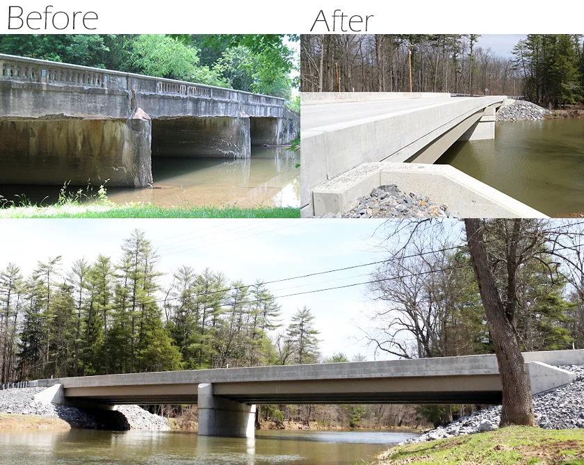 Cypher Bridge Rehabilitation - This project includes the rehabilitation of a two span steel historic truss over the Raystown Branch of the Juniata River and a cast-in-place concrete rigid frame replacement structure (24'-0" span) over Pipers Run. The project also includes 1,338' of approach roadway reconstruction.